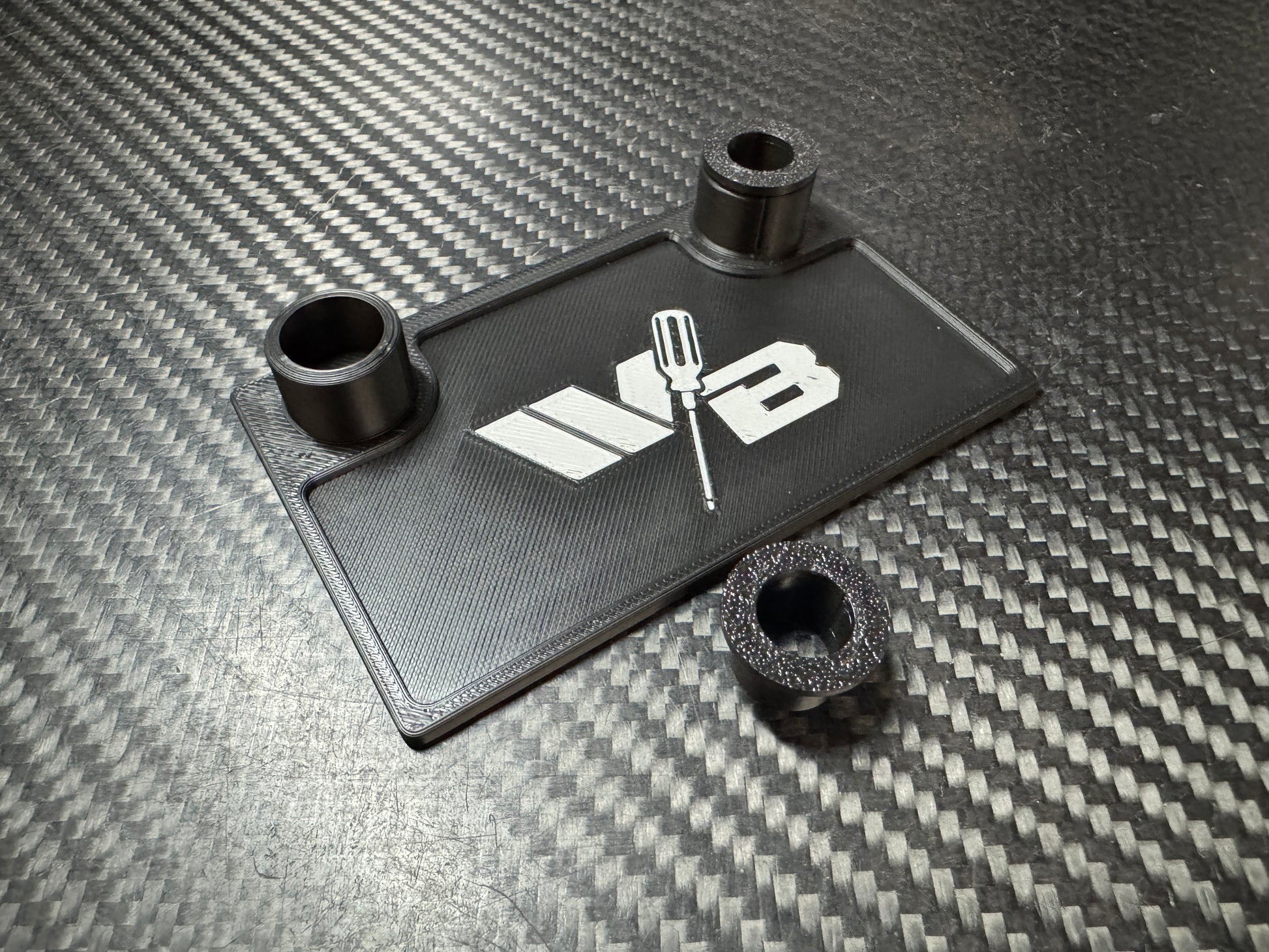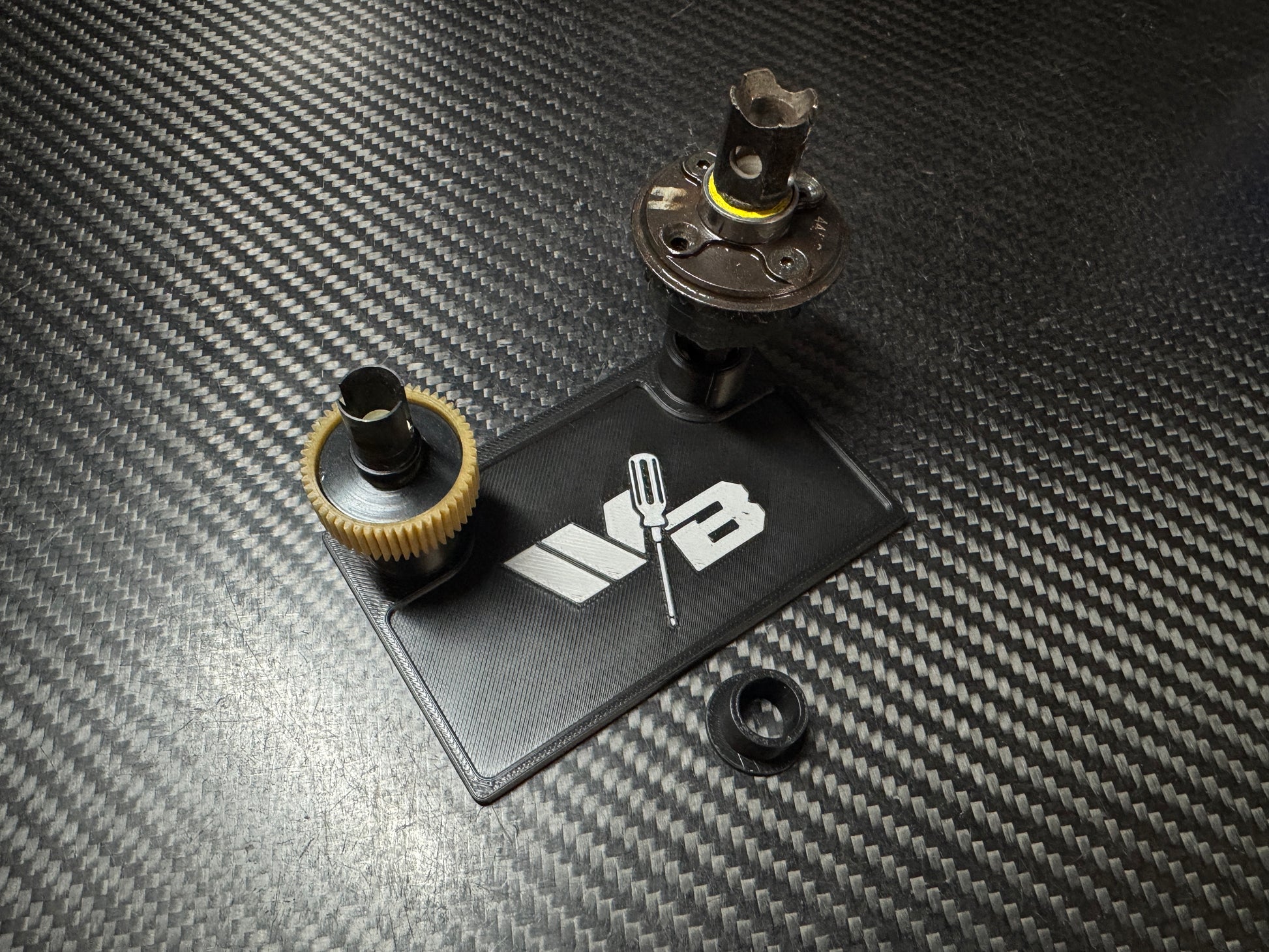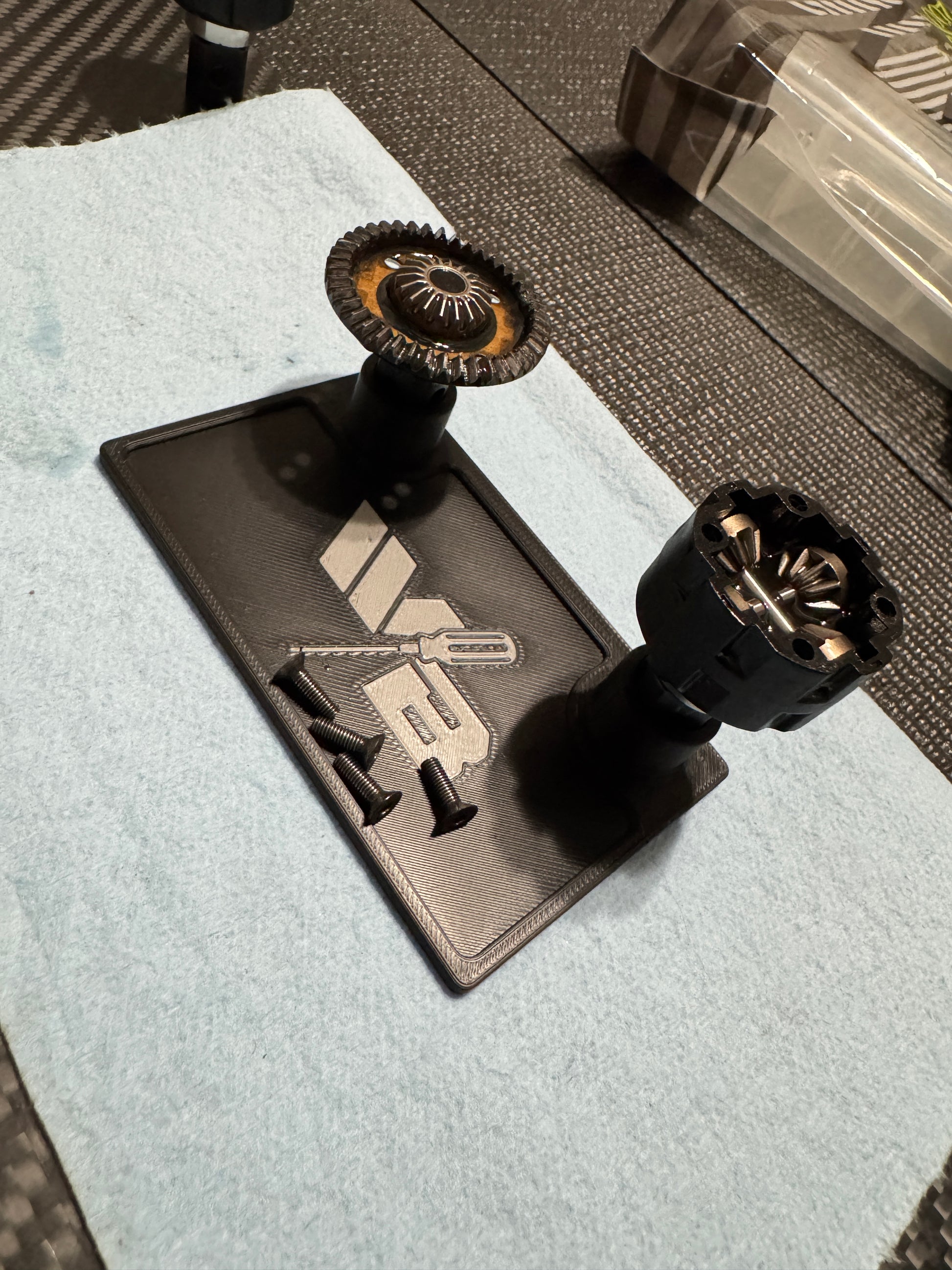 The A1 Diff Service Tray was designed to be a compact way to keep your diff from falling over while you let the oil settle. The tray supports the opposite side to help keep the oil from running on to your pit area. The front plate can be used to store the screws, shims, etc!